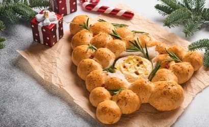 Mekane, aromatične kuglice hljeba složene u oblik novogodišnje jelke, pečene sa maslacem, bijelim lukom i svježim ruzmarinom — a u…AA