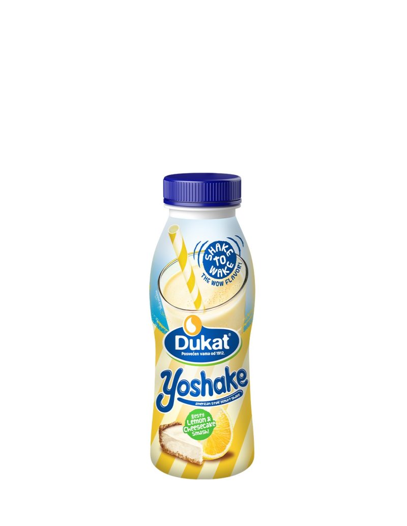 Dukat ponovno donosi inovaciju na domaće tržište, ovoga puta predstavljajući Yoshake – prvi American style jogurt shake u regionu. Riječ je o potpuno novom konceptu u svijetu jogurta, osmišljenom za modernog potrošača koji traži inovativne i praktične proizvode. Dukat Yoshake ističe se lagano prozračnom, baršunastom i bogatom teksturom uz osvježavajuću bazu jogurta.