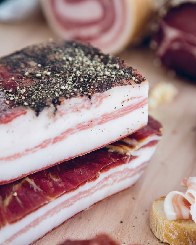 Ova slanina je pravi delikates od svinjskih obraza i ima intenzivnije arome od pancete kao i veći procenat masnoće. Najviše se koristi kao dodatak tjesteninama,a originalna je u receptima za Pastu Carbonaru.